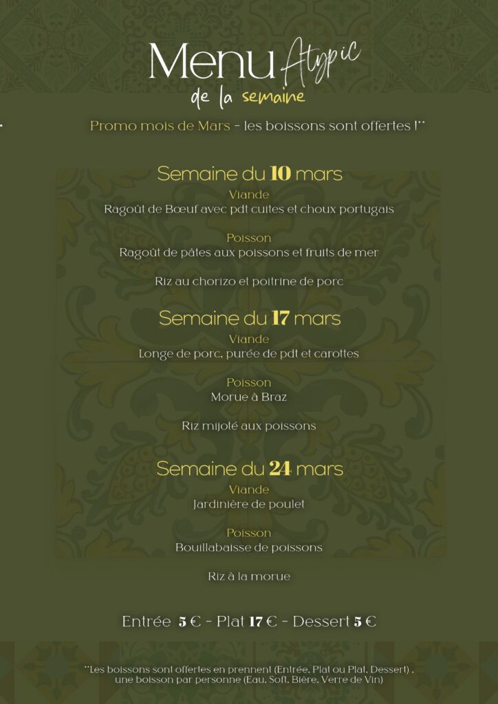 Menu du jour pour la semaine