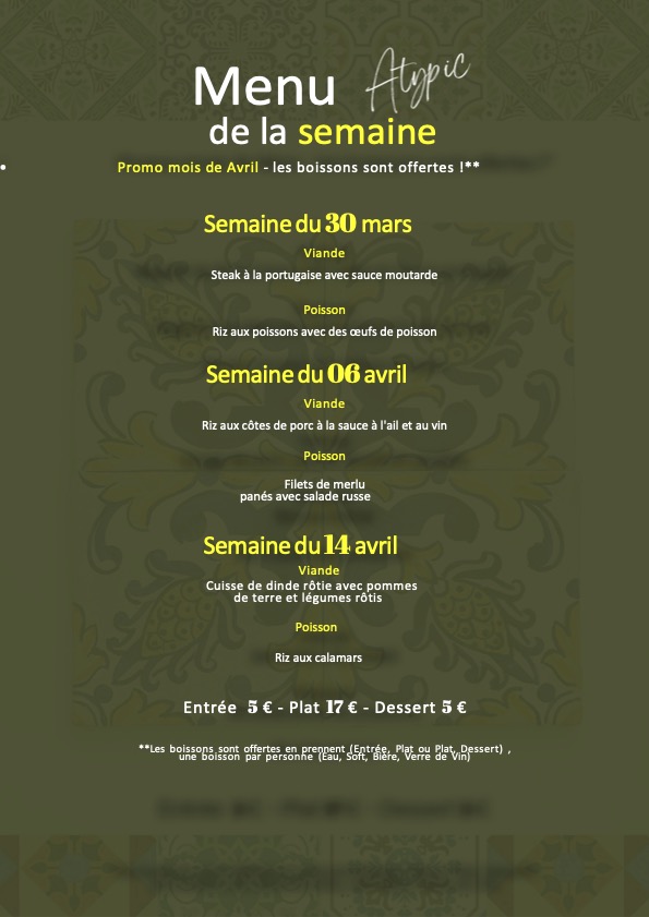 Menu du jour pour la semaine